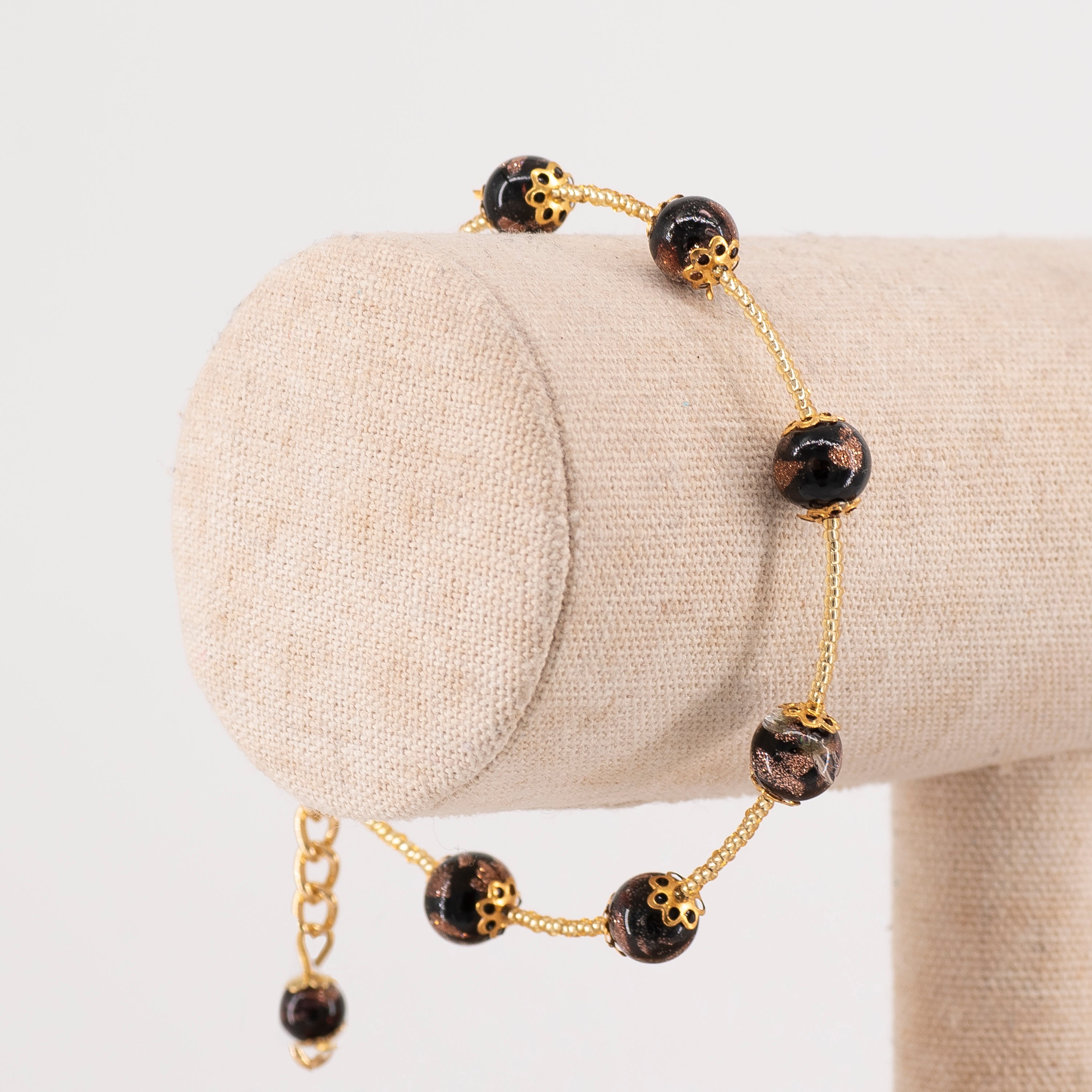 BRACCIALE PERLE SOMMERSO AVVENTURINA IN VETRO DI MURANO ORO ROSA