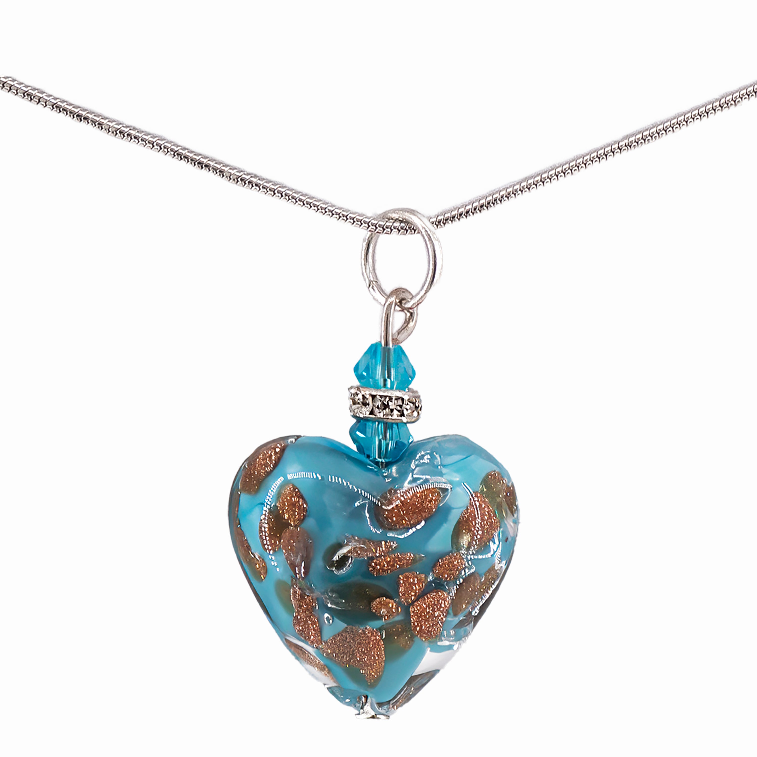 PENDENTE BALL CHAIN CUORE MICRO AVVENTURINA IN VETRO DI MURANO BIANCO