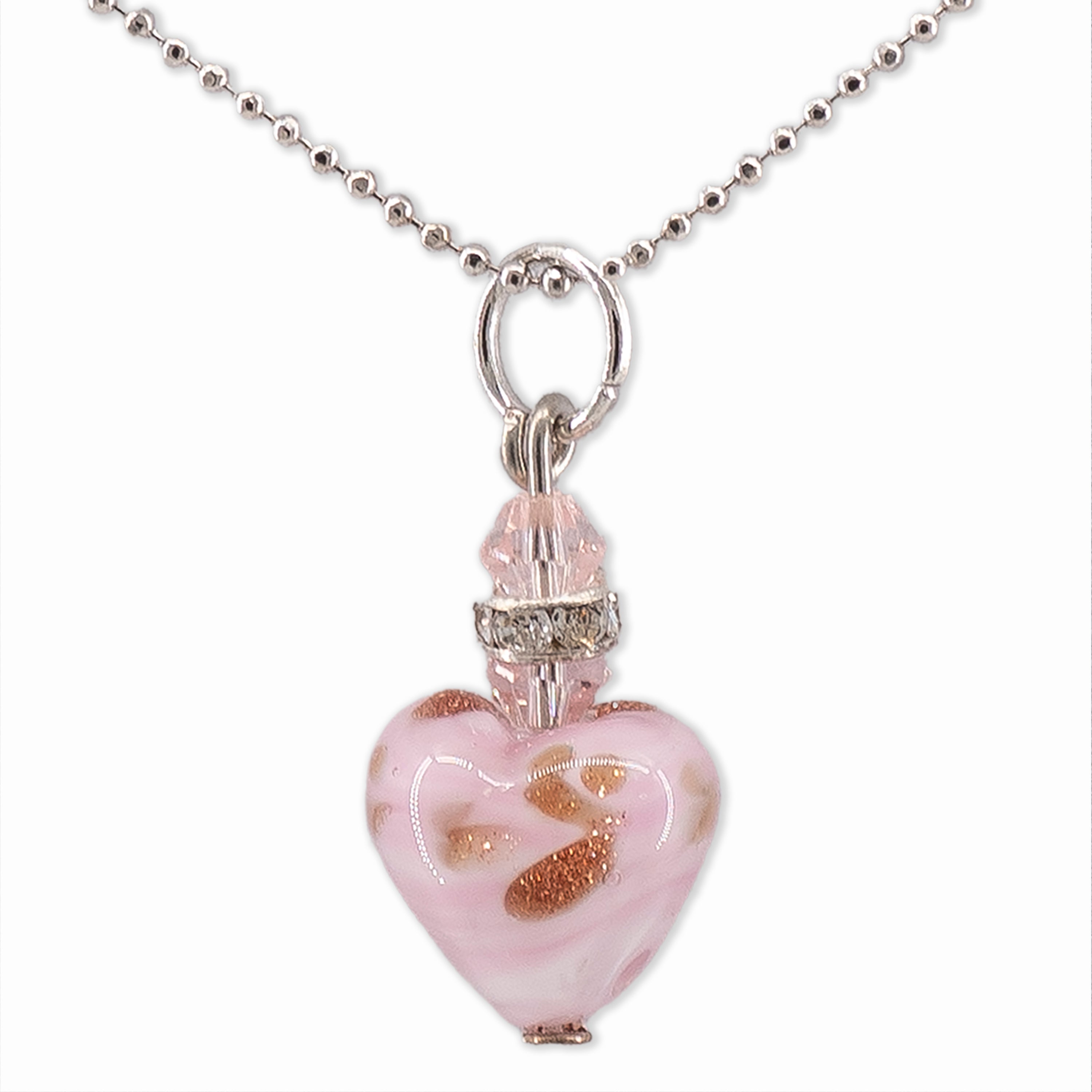 Elegante pendente micro a cuore in vero vetro di Murano. Disponibile nelle colorazioni: rosso, rosa e bianco.